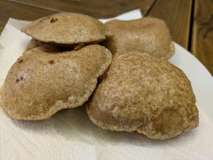 Eine Gruppe, mit der ich monatlich koche, hat sich indische Speisen und Puri (Bhatura) gewünscht. Puri ist eine Art Brot, das in heißem Öl frittiert und wie ein Luftballon wird. Da wir nicht sehr viel Öl verwenden wollten, haben wir Mini-Puri hergestellt.