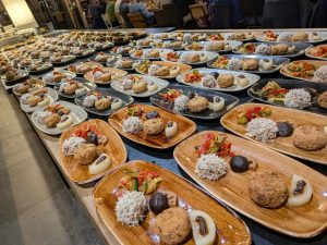 2回にわたる寿司講習の次の日は「居酒屋の夕べ」でした。スペインのタパスのようにたくさんの料理を作って盛り付けたのですが、やることが多くて写真を撮っている暇がありませんでした。
