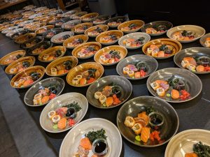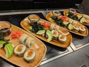 Devo organizzare 2 corsi di Sushi (à 20 partecipanti) e 2 cene con i piatti giapponesi (à 81 ospiti). Dato che ci sono molto da fare ho portato un aiuto da Berlino.