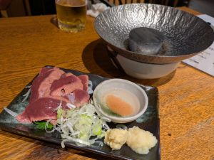 Ho trovato una piccola e nuova Izakaya, bar giapponese, vicino alla stazione Oyamadai e ci siamo rivisti.